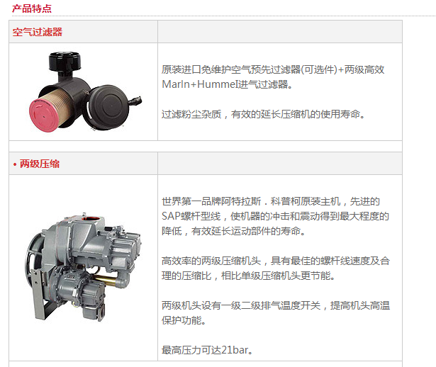 新款移動機的螺桿主機采用原裝進口的阿特拉斯·科普柯集團Size 2系列兩級壓縮的高壓主機,輸出壓力可達17-21公斤,效率高,可靠性好。